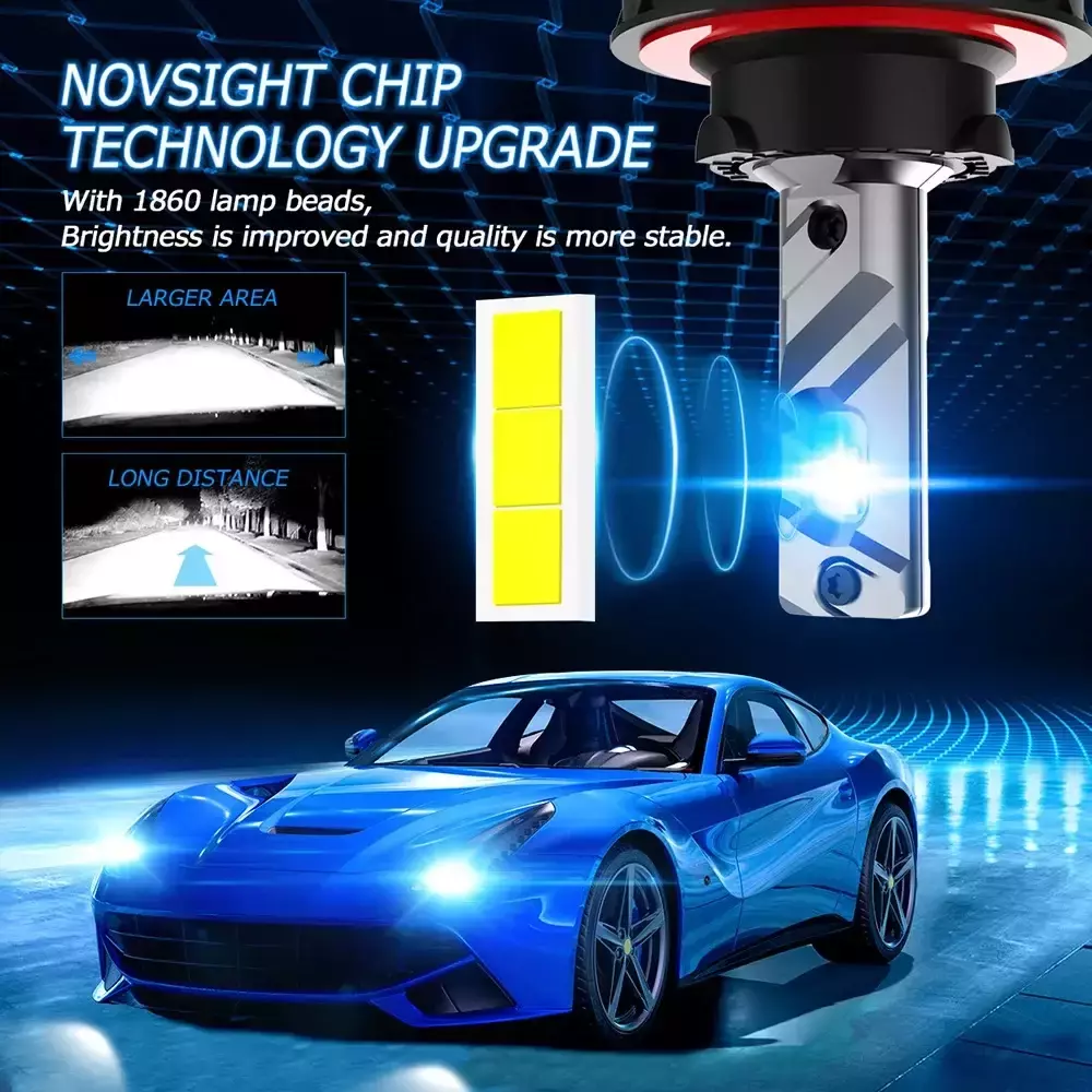 Автомобільні лампи Novsight H7 A500 N61 високотехнологічна новинка цього сезону. Чудово підходить до всіх типів фар. Дальність освітлення дороги до 260 метрів. Потужність двох ламп становить 90 Вт — це дуже потужні та яскраві лампи.