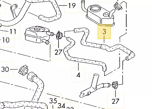 Патрубок системи охолодження VW T4 2.4D/2.5TDi трубка тосола-масл.радіатор VAG 074121058F